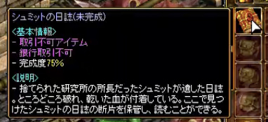 喰われた情熱(Lv2030~2060) ホーム » 喰われた情熱(Lv2030~2060) 目次 Toggle1. 出所不明の怪物達2. 放置された大地3. 恨めしい記録4. 喰われた情熱日誌を読む 喰われた情熱 孤立した飼育地へ入場する為のクエストです。 🔗 2025年10月16日に追加されました。 Lv2030〜受諾可能 報酬「染血石40個」 秘密ダンジョン1回 1. 出所不明の怪物達 ・ガイド・2030〜・クエスト・喰われた情熱 【冒険家協会ブルンネンシュティグ本部】 【ダリン】と話してクエスト開始 会話後【デフヒルズ西部地域】へ飛ばされる 【デフヒルズ西部地域】 【ザイル】と話してUP 会話後【未確認探索飼育場】へ飛ばされる 座標 未確認探索飼育場(122.16) まっすぐマップ上へ行き 【移動ポータル】で【孤立した飼育地】へ 【ザイル】と話してUP 2. 放置された大地 座標 孤立した飼育地(226.31) 右上へ移動し 【ザイル】と話してUP 【捨てられた研究所】へ飛ばされる 【パンダラーカ】と話してUP シュミットの日誌(未完成)が手に入る。 3. 恨めしい記録 【ダンジョン内のMOB】を倒して 【日誌】を手にいれる ドロップはまずまず ドロップしたら、 【ザイル】と話してUP 4. 喰われた情熱 マップ右下へ 移動ポータルで次の階層 【捨てられた研究所下層】へ移動する 【捨てられた研究所下層】左上 (76.31) 🔶【彫刻】をクリックしてUP 【隠蔽された実験室】へ飛ばされる 【装置】をクリックしてボス「ヴェノムベッセル」が登場 【ヴェノムベッセル】を倒してUP 【ザイル】と話してクエスト完了。 【シュミットの日誌】が貰える! 【染血石40個】が貰える! 【デフヒルズ西部地域】へ飛ばされる 日誌を読む 🐈⬛ 情報提供:じじ様 ありがとうございます!