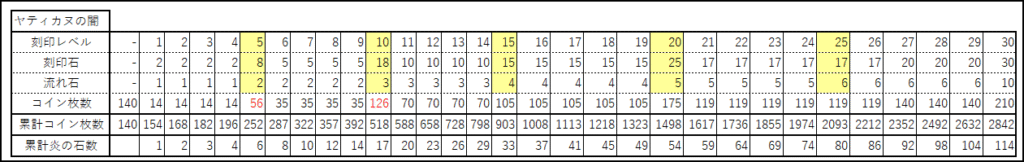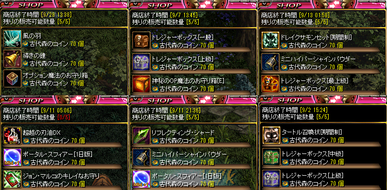 ヤティカヌコイン集める方法 ホーム » システム » ヤティカヌコイン集める方法 目次 Toggle闇商人のラインアップ例防具完成までの必要枚数ヤティカヌコインルート ヤティカヌコインを集める方法 ヤティカヌコインを集める方法はいくつかあります。 ウィークリークエストや秘密周回がおすすめ。 今すぐたくさんコインが欲しい!という方はボス周回がおすすめです。 📌 闇商人でお買い物・ヤティカヌ装備を買える! 🔷 闇商人はガレリオン野営地と戦闘フィールドのランダムな座標に登場 🔷 闇商人が販売するアイテムは、サーバーオープンから約4時間間隔でリセット 闇商人のラインアップ 🔷導きの鐘(ワールド経験値2倍)の出現率は約0.1% 🔷導きの鐘は1キャラ1つ 画像 アイテム名 個数 必要枚数 導きの鐘 1 70 綺麗なジョン・マルコのお守り 5 70 ミニリフレクティング・シャード 1 70 リフレクティング・シャード 1 70 ミニハイパーシャインパウダー 1 70 ポータルスフィア[1日版] 1 70 ペブルコクーン 1 70 ソーラーコクーン 1 70 タートル召喚状[期間制] 1 70 ドレイクサモンセット[期間制] 1 70 超越の刃油DX 5 70 超越の魔力神秘水DX 5 70 ペイトンのユニークボックス 1 70 トレジャーボックス[一般] 1 70 トレジャーボックス[中級] 1 70 トレジャーボックス[上級] 1 70 トレジャーボックス[最上級] 1 70 珍貴のオプションお守り箱 1 70 神秘のオプションお守り箱 1 70 運命のオプションお守り箱 1 70 オプションお守り箱 1 70 闇商人のラインアップ例 防具完成までの必要枚数 情報提供:@EnmaNeko えんまねこさんありです!!ヽ(´┏∀┓`)ノ ヤティカヌコインルート ヤティカヌのコイン集め。2週間で集めた強者がいたりいなかったり。 沸きに合わせて月の出〜暁まで走りまくるひともいるとか・・・ アリドネ 毎日0時付近に星降るのアリドネへ通いコインを集める方法 アリドネは「ヤティカヌ日の出森林」「ヤティカヌ星降る森林」にあります! 「メガンテリオン」「大人アリドネ」がいて毎日0時付近に討伐されます。 午前と午後に一応ありますが、人数がいるのは夜のみ。ソロだと厳しい。 🔶 フィールドボス討伐用専用マップへの入口ポータルが5分間開きます。 🔶 ボス討伐報酬は1日1回のみ 🔶 その日に討伐を行っている場合、入場ポータルの色が赤色に変化します。 🔶 アイテムの報酬権利の初期化は毎日0時に行われます。 月の出秘密 🔶 入口は【月の出】1クリア3枚取得可能。 🔶 記憶不可の為毎回走ることになります。 🔶 入口に入るのにテクニックが必要。プロは裏に回り込んで入るとか。 🔶 1日2回行くか、 まとめて14回を日曜日に?1クリア3枚もらえて効率的!! 📌 妖精に選択を聞かれます。 一番簡単な問題が効率的で簡単で安全。 🔶 一番簡単な問題を選ぶ。 🔶 一番上でおねがいします。 🔶 倒して石を触るを繰り返し。 大体1分くらいでクリア可能! 秘密前が記憶できないので毎回走りにいくのがちょっと面倒。。。 ウィークリークエスト(週1回) ヤティカヌのウィークリークエストは【73.13】のリヤンからクエストを受けれる 🔶 クエストは月曜日更新 🔶 報酬はコイン40枚 🔶 ヤティカヌのモンスターならどこでも!